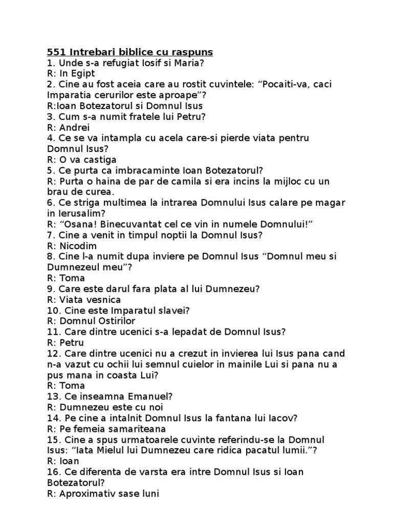 Timpul efectiv de lucru este de 50 de minute. 03.07.2020 · intrebari legate de religie.la cotitura drumului, langa o usa d. Doctorul nutriționist gabriela profir ne răspunde la 5 întrebări.. Citeste cu atentie afirmatile urmatoare.