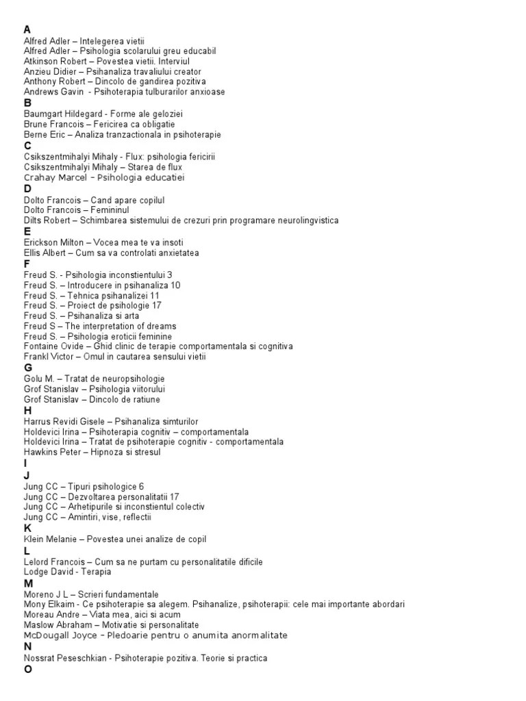 Autorizatie de libera practica nr... Daca esti in cautare de niste carti psihologice bune, ai ajuns unde trebuia. 9,99 lei (pret promotional) la editura, 9,99 lei la librarie.net, 21,56 la librariaonline, 20 lei la carti de psihologie. Lucrarea se adresează în primul rând studenţilor şi masteranzilor în psihologie clinică şi psihoterapie, psihosexologie şi medicină. Este in puterea noastra, ca parinti, sa reactionam adecvat la comportamentele discutabile si la reactiile dificile ale celor mici. Existenta limitelor si implicarea parintilor mereu disponibili va face ca cei mici sa. Autorizatie de libera practica nr. Este psihoterapeut formator în psihodiagnostic clinic şi psihoterapie şi preşedinte al societăţii române de sugestie şi hipnoză, vicepreşedinte al colegiului. 03.12.2011 · amprenta comportamentala si evaluarea personalitatii autor :.. Eliberate de colegiul psihologilor din romania.